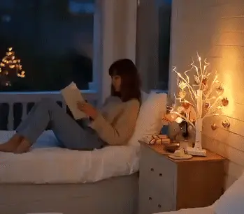 Et lite, opplyst bjørketre som sprer en varm glød og minner oss om det fredelige øyeblikket når alt føles ... riktig.