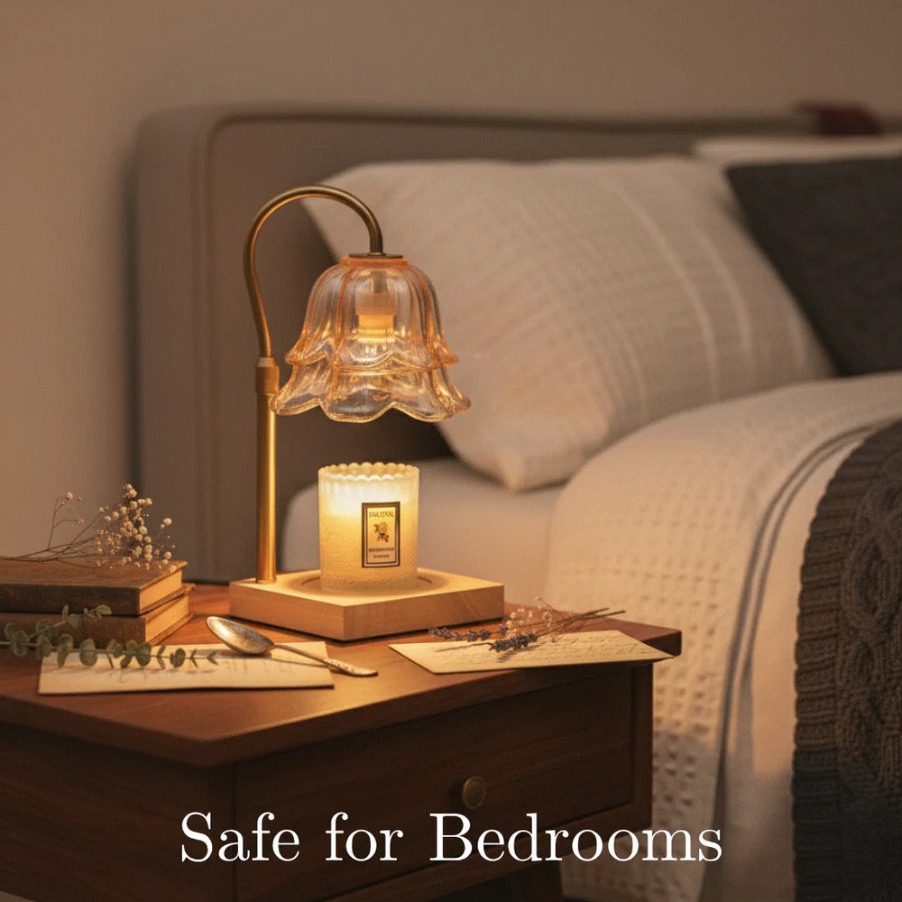 Si farvel til stresset med åpen ild. Lampen vår varmer forsiktig opp lysene og gir en beroligende glød uten brannfare – perfekt for hjem med barn eller kjæledyr!
